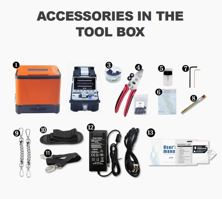 | Fiber cleaver | Equipped with electric high-precision cleaver |