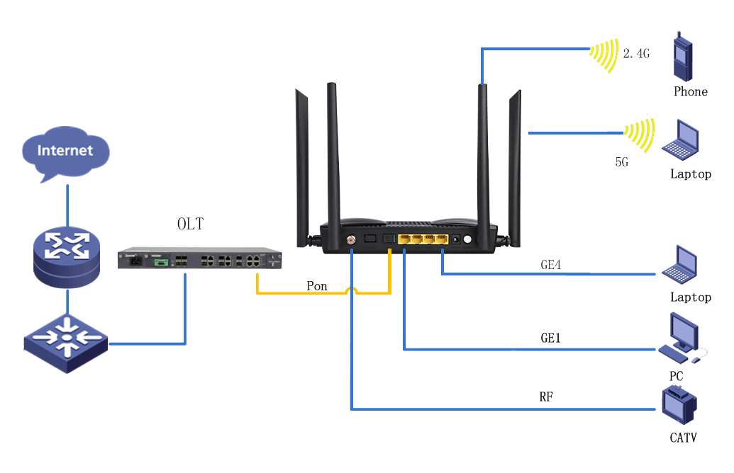 | Interface | 1* G/EPON+4*GE+2.4G/5G WLAN+1*RF |