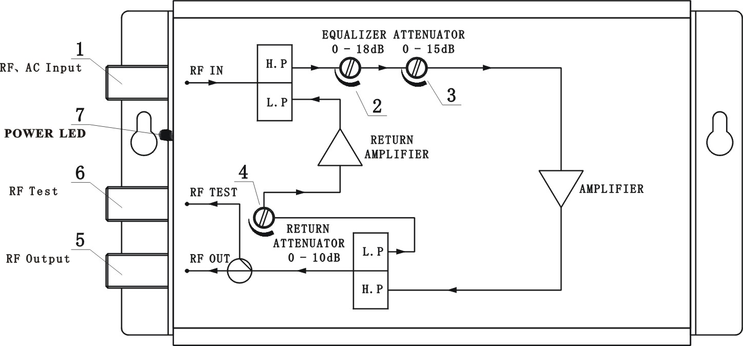 - Adopt SOT-115 encapsulation RF module on access, reliable non-liner. Choose low-noise micro-wave push-pull circuit, small distortion and high S/N ratio.