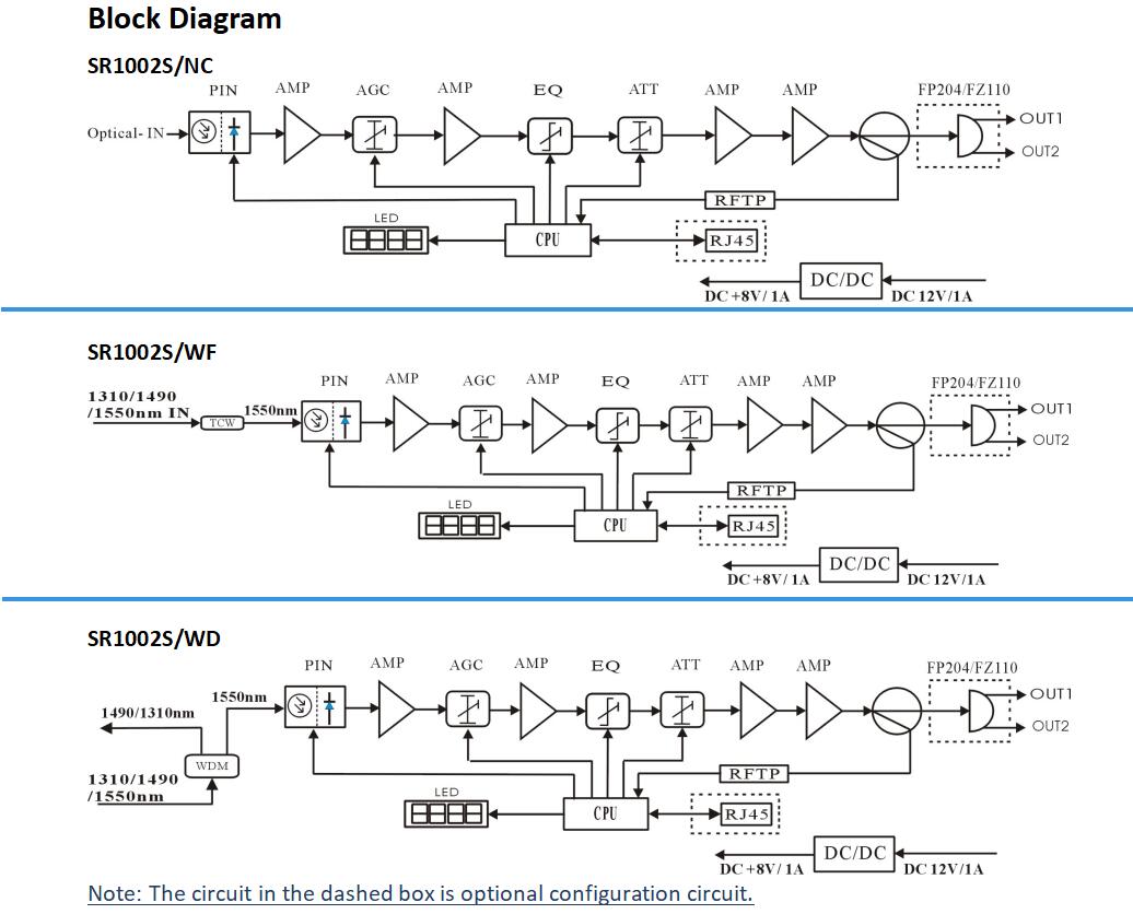 SR1002S/WF: Built-in channel filter, the RFTV operating wavelength is 1550nm.